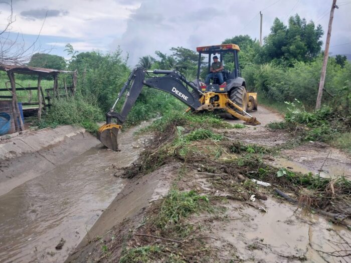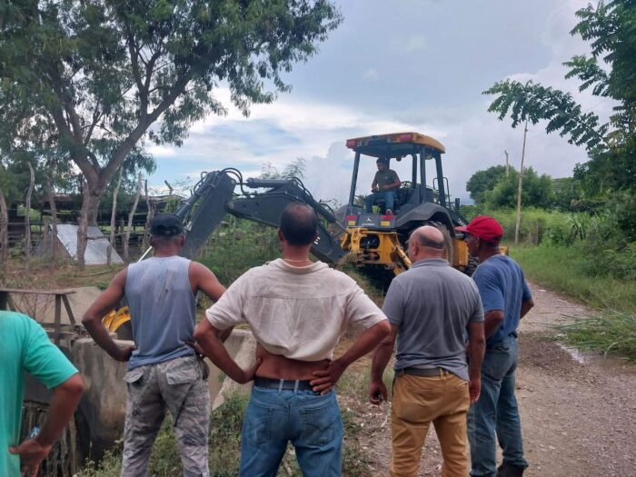 El Alcalde del Distrito Municipal de Maizal Lic. Jaime Del Rosario Sanchez asiste a línea A, para destapar y dar mantenimiento al Canal encachado, ya que este lleva tiempo tapado y el Agua salia a la carretera.
