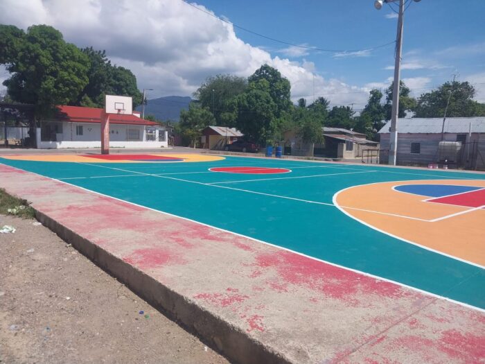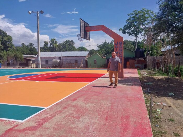 Por Disposición del Lic. Jaime Del Rosario Sanchez se dispuso el Mantenimiento de la Pintura de la Cancha Municipal de Maizal en el Barrio Magdaleno Zapata.