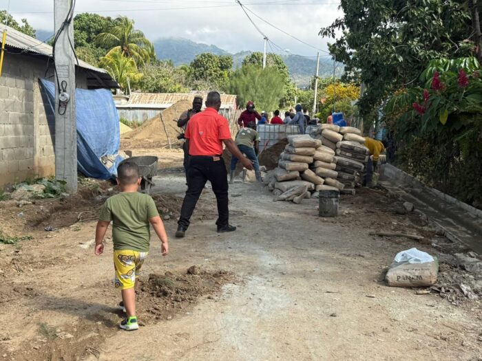 El Lic. Jaime Sánchez, alcalde del Ayuntamiento del Distrito Municipal de Maizal supervisa la construcción de contenes y badenes que se realiza en el sector valle nuevo Damajagua; invirtiendo en soluciones pluviales