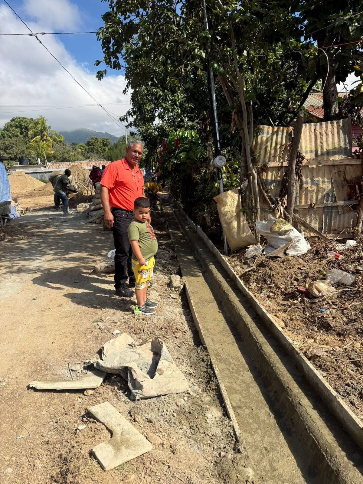 El Lic. Jaime Sánchez, alcalde del Ayuntamiento del Distrito Municipal de Maizal supervisa la construcción de contenes y badenes que se realiza en el sector valle nuevo Damajagua; invirtiendo en soluciones pluviales