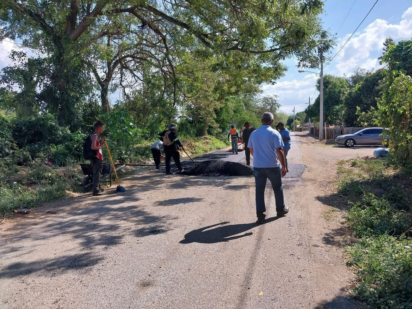 Hoy estamos en el sector Línea A arreglando donde quiera que esté deteriorada la calle colocándole asfalto nuevo.