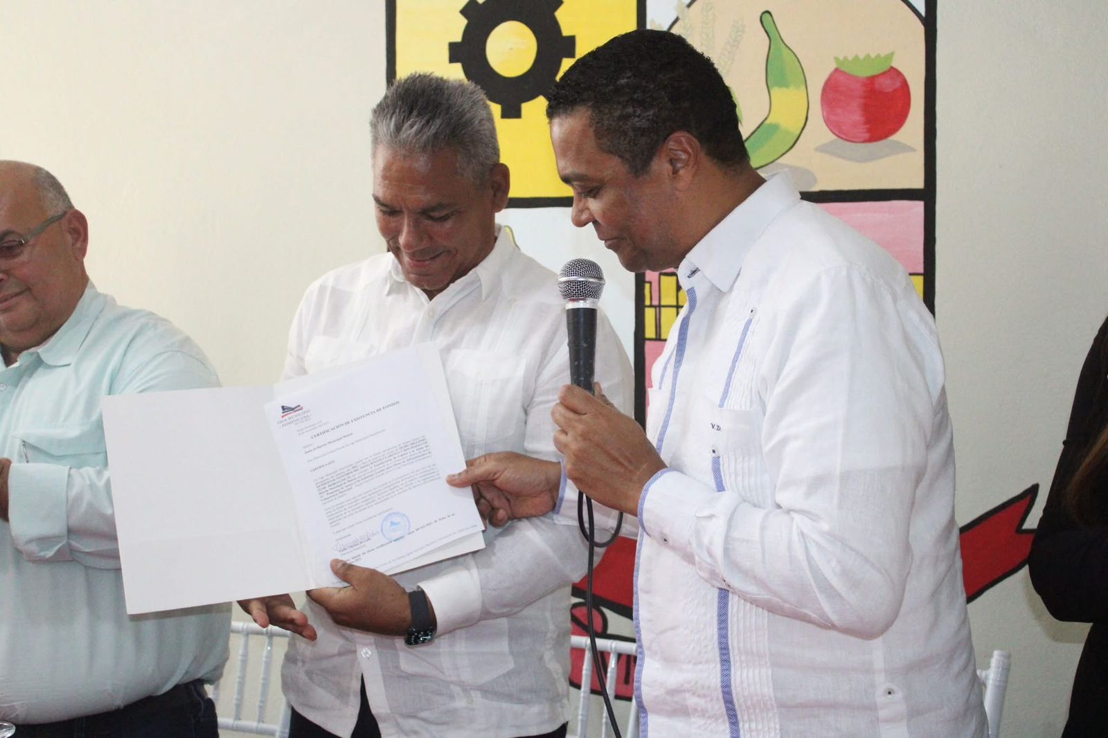 La Mañana de este Jueves el Presidente de la Liga Municipal Dominicana Victor de Aza realizó la entrega del Certificado que acredita los Fondos por Valor de 8 millones de Pesos para la Construcción del Cementerio de Maizal, el Cual fue recibido por el Alcalde Lic. Jaime Del Rosario Sanchez, el Mismo que en el 2020 compro los terrenos para la construcción del Cementerio.